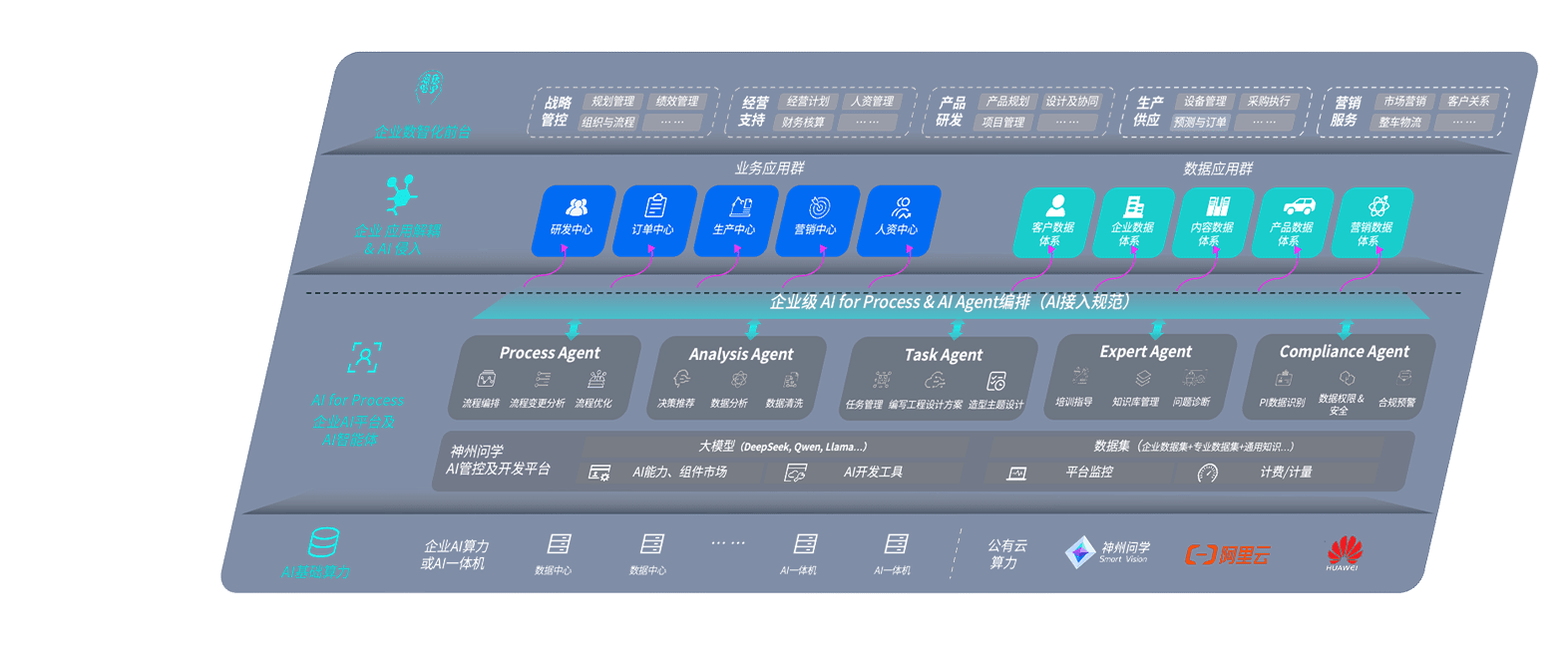 彩霸王问学智车解决方案是一套基于AI技术的汽车行业智能化系统,,覆盖从底层算力到顶层AI应用的全栈方案。。方案由算力层、、模型层和应用层组成:算力层,,,,方案支持多种一体机配置,,,具备云端灵活部署、、、、多云适配以及动态优化计算资源的能力;模型层,,彩霸王问学平台版提供了企业级AI应用一站式构建与管理平台,,,,支持基于后训练强化技术的汽车企业专属模型的训练、、、、评测和运营;应用层,,,,彩霸王问学DeepSeek版提供包括超级员工、、、智能招采、、智能营销、、、智能客服、、AI for BI等一系列解决方案,,,可助力汽车行业实现数字化转型,,,,让管理更智能、、响应更敏捷。。