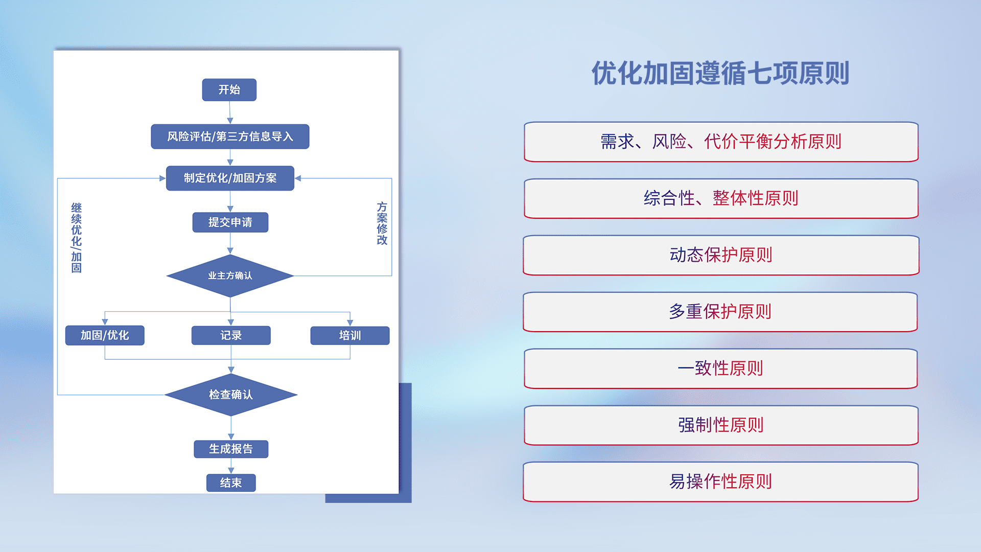 最大程度利用现有资产,,,对评估发现的问题进行封堵与整改,,,,防止漏洞被利用,,,,提升整体网络安全性,,为客户带来高标准的优化加固服务。。。。