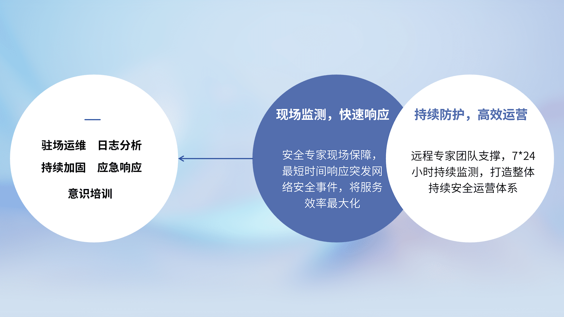7X24小时持续监测安全事件,保持安全策略有效性,降低资产脆弱性风险,,,,精准拦截黑客攻击,,减少被黑客利用的机会,,,第一时间遏制,,降低损失。。